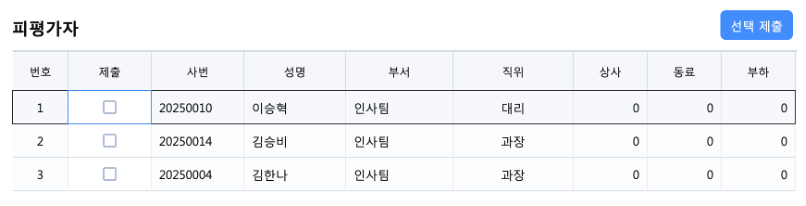 📌 선택제출 이후에는 해당 피평가자의 평가자 구성을 수정할 수 없어요.