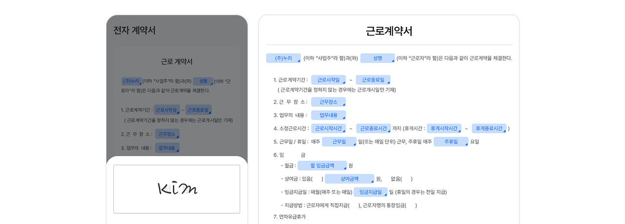 요청된 계약서를 PC와 모바일에서 바로 확인하고 서명할 수 있어요.대량 계약도 클릭 몇 번으로 처리되어 계약 체결 부담을 줄여줍니다.