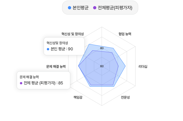 직무별·레벨별 역량 기준으로 구성원의 강점과 개선점을 진단해요.