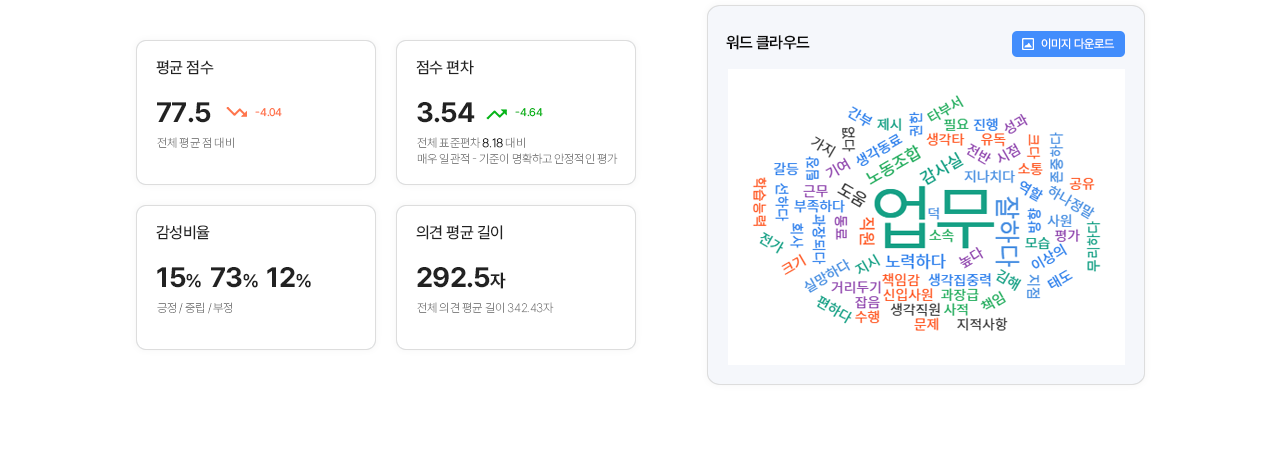 부서별·직급별 성과 패턴을 분석하여 다음 평가기준이나 인사정책 개선에 바로 반영할 수 있습니다.